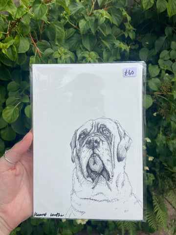 Mastiff is an original drawing, so there is only one! There may be a blemish or a colour test, a smudge or a drop of paint on the paper, creases or cat prints, which is the charm of owning something original. I have tried to photograph these as best as I can.